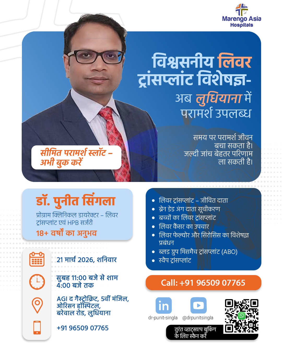 Dr Punit Singla is one of the most accomplished Surgical Gastroenterology and liver transplant surgeon in India currently working with reputed Liver Transplant hospitals in India. In his surgical carrier of more than 18 years, he has performed 1500+ liver transplantation and surgeries including gastro-intestinal tract, liver, biliary tract and pancreas. He has worked at different roles from resident fellow to position of leader of the transplant team, while fulfilling all the responsibilities. He has established liver transplant team from scratch, including planning of infrastructure, procurement of world class instruments, handpicking of trained and experienced team members. Dr Punit Singla was an active member of the team, which pioneered living donor liver transplant in India. With his active role in the team, with innovative ideas, acceptance of novel ideas across the world, the team has done cases requiring different skill set like IVC replacement in Living donor liver transplant, ABO incompatible transplant, in situ split of cadaveric donor, HBsAg positive donor, use of plasmapheresis and CRRT in acute liver failure.